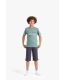 Stylish 2-piece set for boys featuring a sage green 'BETTER' graphic print crew neck t-shirt paired with dark charcoal knee-length shorts. Perfect for everyday casual wear.