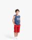 Junior boys two-piece set is designed for energetic kids who need comfort and casual style every day. Made from soft breathable cotton blend fabric, it feels gentle on the skin and helps keep children cool during warm weather. The sleeveless printed top offers a sporty modern look with easy movement, while the matching shorts provide a relaxed fit for play and daily activity. Lightweight and practical, this Junior set is ideal for home, outings, vacations, and active summer days.