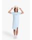 Adorable light blue girls' nightdress featuring an 'ALOHA' print with a fun duck plush toy. Asymmetric hem, button details, and short sleeves for comfortable nighttime wear.