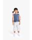 Dress your little one in style with this adorable 2-piece set. The steel blue sleeveless peplum top features a delicate ruffle hem, a round neckline, and a charming 'Hope' embroidery detail on the chest. The matching white culottes are adorned with an all-over floral print, offering both comfort and style. Pink satin ribbon hair ties complete the look for a truly coordinated outfit. Ideal for casual wear, playdates, and outings.