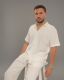 "قميص صيفي رجالي أنيق بأكمام قصيرة، يتميز بياقة كوبية مفتوحة وتصميم عصري. القميص مصنوع من قماش الكتان الفاخر بنقشة (مربعات) بارزة وناعمة، مما يجعله الخيار المثالي لإطلالة صيفية منتعشة وراقية."