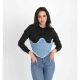 Make a bold fashion statement with this unique Corset Detail Cropped Sweatshirt. This top perfectly fuses casual comfort (the black bodice and long sleeves) with dramatic structure (the high-fashion bustier panel). The contrasting Light Blue Corset-Style Panel features a structured, curve-defining fit with a signature pointed hem, instantly elevating this piece from simple casual wear to a head-turning ensemble.