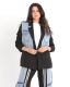 Elevate tailoring with this unique black blazer featuring striking light-blue contrast panels. A structured, statement jacket blending classic fit with modern design