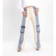جسّدي جوهر الأناقة العصرية لأسلوب الشارع (Street Style) مع بنطال الدينيم المتباين بتصميمه العملي. هذه القطعة الخاطفة للأنظار تعتمد على بناء هندسي مبتكر يدمج بين الألواح؛ حيث يبرز اللون الأسود الفاخر في المنتصف، وتحيط به ألواح من الدينيم الفاتح (Light-wash) على الجانبين.