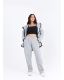 "الطقم الرياضي المحتشم المثالي. يتكون هذا الطقم من قطعتين باللون الرمادي الفاتح، يشمل سترة رياضية (هودي) بياقة عريضة لافتة، مع بنطال 'سويت بانتس' بأرجل واسعة. صُمم الطقم بقصة فضفاضة ومريحة، ليكون قطعتكِ الأساسية لإطلالة رياضية يومية وراقية."