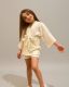 Girls’ white kimono set featuring a textured wrap top with waist tie and matching shorts for a stylish, comfy look.