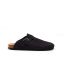 A classic, comfortable unisex mule in NBlack, featuring a smooth, matte enclosed upper with an adjustable side buckle. This slip-on is built on a natural cork footbed with a contrasting black outsole.