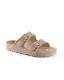 Unisex Kids' Beige EVA Double-Strap Slide Sandal. Comfortable, waterproof, and lightweight EVA material with adjustable buckle straps and a cushioned footbed. A great kids' summer sandal for the pool or casual outdoor wear in a versatile beige/tan color.