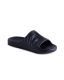 A practical and durable unisex double-strap slide sandal in classic black. The sandal is fully constructed from lightweight EVA material, featuring two adjustable buckle straps and a supportive, contoured footbed for comfortable, casual use.