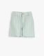 Adorable mint green and white striped linen shorts for baby boys, featuring a classic button closure, elasticated waistband at the back, and a clean tailored finish. Perfect for warm weather outings.
