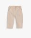 Stylish baby boys chino trousers in beige with subtle vertical stripes. Features a button closure, side pockets, elasticated back waistband, and neatly cuffed hems. Perfect for smart-casual occasions.