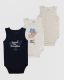 It includes three sleeveless baby bodysuits.