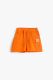 These vibrant orange cargo shorts are designed for active boys who love adventure. Crafted from lightweight fabric, they offer comfort and durability for everyday wear. The elastic waistband with a drawstring ensures a secure and adjustable fit, while the cargo-style front pockets provide practical storage. A charming 'Wild' patch on the front pocket adds a playful touch, making these shorts a fun addition to any kids' wardrobe.