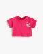 This adorable cropped t-shirt is crafted in a vibrant fuchsia pink color that little girls will love. The front features a charming Polaroid-style graphic print showcasing a fairy with the text 'feel your dream' and 'fly like a fairy', adding a whimsical touch to the design.