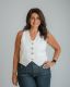The classic tailored white vest. Features a flattering V-neck, button-front closure, and structured fit. A versatile layering piece for polished professional or chic casual looks.