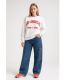 White sweatshirt with crew neck, featuring a 3D embossed Los Angeles print for a stylish modern look.