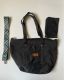 A versatile black canvas tote bag with a matching removable pouch and an adjustable patterned shoulder strap, perfect for everyday use.