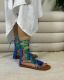 Colorful gladiator-style sandals with multicolored straps and ankle ties, designed for a bold and vibrant summer look.