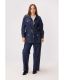 This chic two-piece ensemble is meticulously tailored from high-quality, non-stretch Denim, offering a contemporary and polished aesthetic. The set is comprised of a belted utility jacket, styled with a sophisticated collar, patch pockets, and cinched at the waist with a self-tie belt to create a flattering silhouette. Both the jacket and the matching straight-leg trousers are detailed with small, shimmering star appliqués on the pockets and sleeves, providing a subtle element of elevated detail. This refined garment is suitable for a range of occasions, seamlessly merging the rugged durability of denim with tailored elegance.