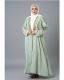 Step out in graceful style with our stunning Mint Green Pleated Modest Set. This two-piece outfit includes a long, flowing abaya or open cardigan and coordinating wide-leg pleated trousers, providing a complete and luxurious look. Crafted from a lightweight, soft fabric, this set drapes beautifully, making it ideal for formal events, Eid celebrations, or chic daily wear. The gentle mint green color is fresh and contemporary, ensuring you stand out with elegance and modesty.