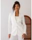 Signal breast blazer with peak lapels and buttons at the front. Shoulder pads and long sleeves with buttons at the cuffs, jetted front pockets with a flap and a single back vent. Lined.