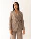 Double breasted blazer with peak lapels and buttons at the front. Shoulder pads and long sleeves with buttons at the cuffs, jetted front pockets with a flap and a single back vent. Lined.