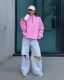 Oversized Pink Quarter-Zip Pullover Sweatshirt