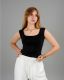 A sleek black sleeveless top with a modern square neckline, designed for a clean, feminine silhouette and effortless everyday styling.