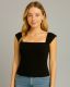 "The Essential Square-Neck Top: Elevate your basic collection with this universally flattering fitted top. The striking square neckline and delicate cap sleeves in Classic Black provide an effortlessly chic, foundational piece for any elevated look."