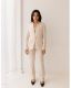 Collarless Blazer and buttons at the front. Shoulder pads and long sleeves with buttons at the cuffs, jetted front pockets. Lined.