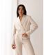 Cropped blazer with peak lapels and buttons at the front. Shoulder pads and long sleeves with buttons at the cuffs.