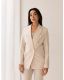 Double breasted blazer with peak lapels and buttons at the front. Shoulder pads and long sleeves with buttons at the cuffs, jetted front pockets with a flap and a single back vent. Lined.